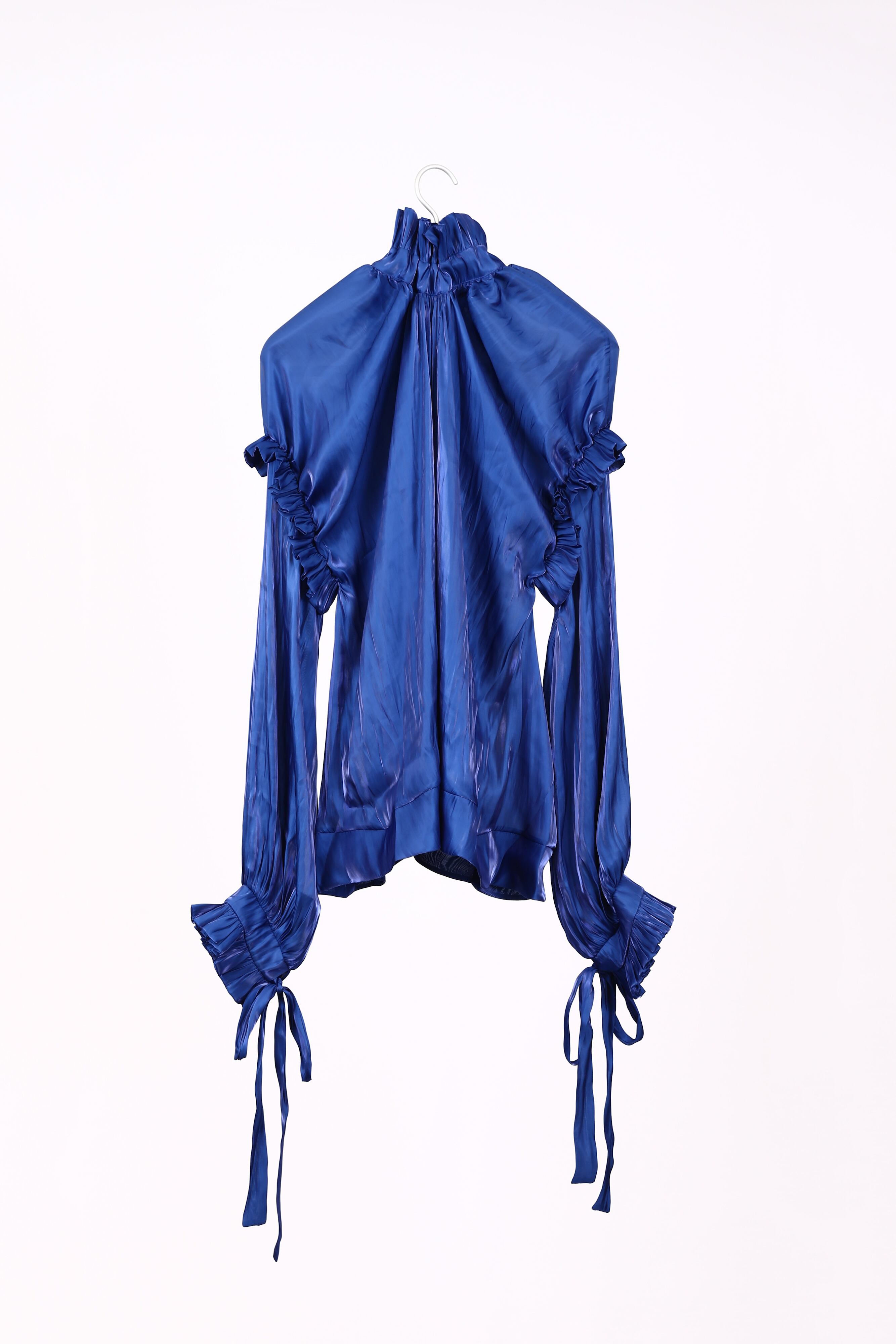 首と袖部分にギャザーを寄せた女性らしいデザインです。